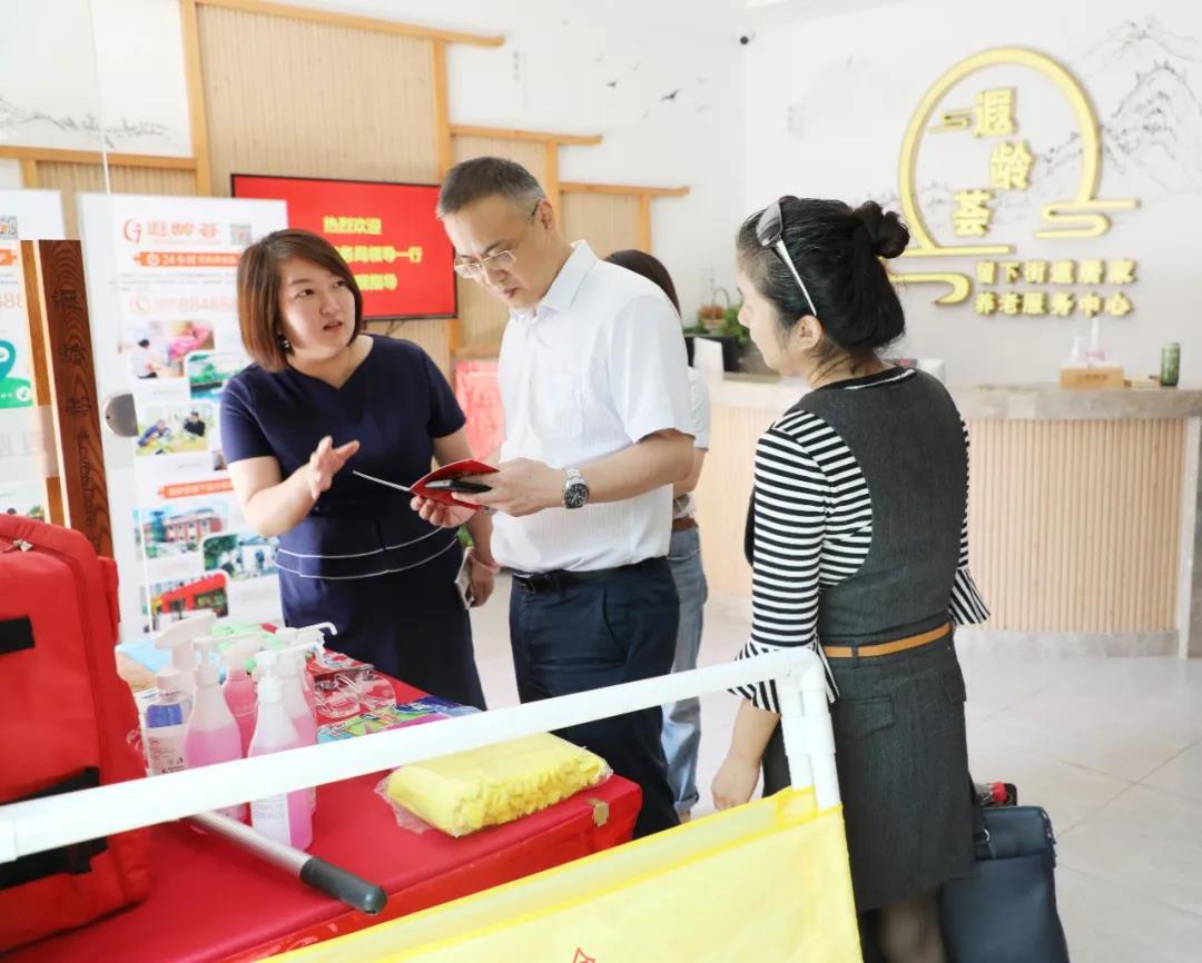 2020年7月23日,杭州市商务局副局长朱铮一行莅临巾帼西丽集团旗下遐龄荟居家养老服务中心考察调研,巾帼西丽集团董事长丁常菊和总经理郭昱辰热情接待。