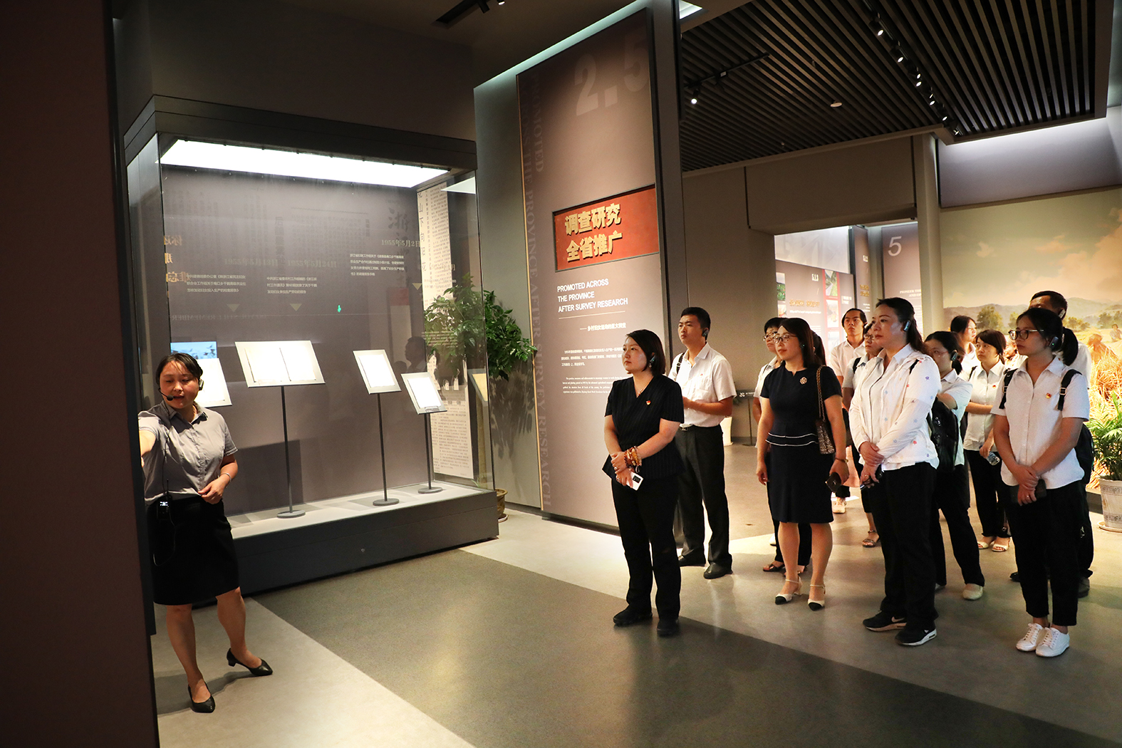 在讲解员的带领下,千鹤的时代背景及历史沿革和现代解读,一步步的展现在大家面前,千鹤妇女打破千年旧俗,走出家庭,参加农业生产,孕育了“自强奋斗撑起半边天,创新创业敢为天下先,忠诚奉献共圆家国梦”的千鹤妇女精神,得到了毛泽东主席的关注并写下了长达512字的按语,使千鹤成为“妇女能顶半边天”思想的重要发源地,成为新中国妇女的一面光辉旗帜。