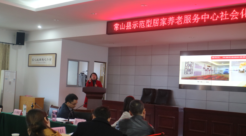 4月2日上午,衢州市示范性居家养老服务中心社会化运营座谈会在常山县民政局举行,衢州市民政局副局长罗文昆、衢州市民政局社会养老服务指导中心主任林丽芬、衢州市下属柯城、衢江、江山、龙游、开化,常山六个区县的民政局领导出席了此次会议。其中,杭州巾帼西丽老年服务中心作为民营社会组织受邀出席。
