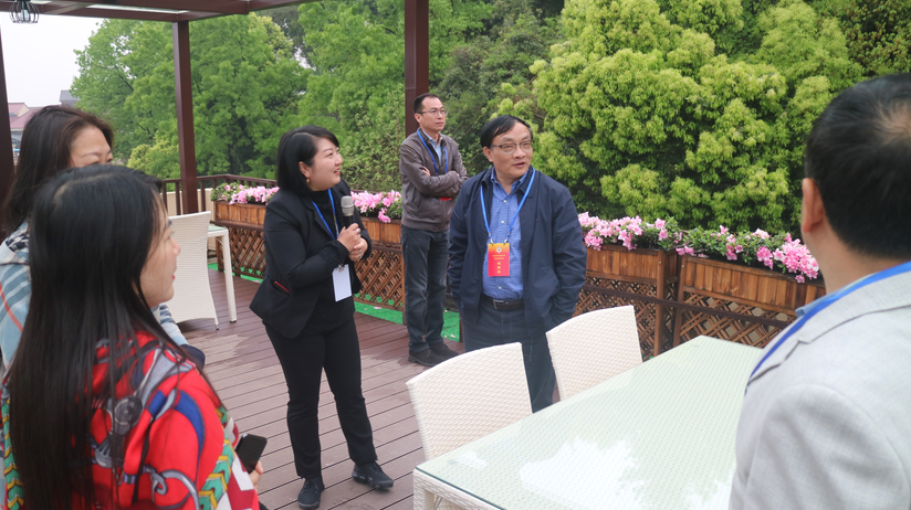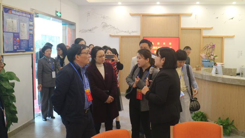 巾帼西丽服务集团总经理郭昱辰向来访领导简单介绍了养老服务中心的楼层布局及服务功能。