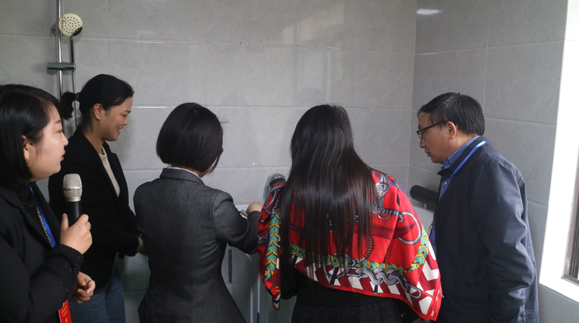 随后,郭昱辰总经理带领一行人参观了养老服务中心,参观过程中,各位政协委员对养老服中心的室内布局和环境赞不绝口,特别是中心的适老化家具和助浴器引起了委员们的浓厚兴趣,纷纷想要亲身体验一回。