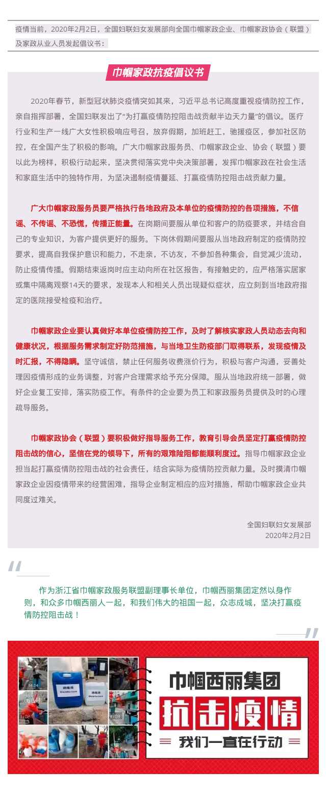 巾帼西丽集团全面响应全国妇联倡议:为打赢疫情防控阻击战贡献巾帼家政人力量