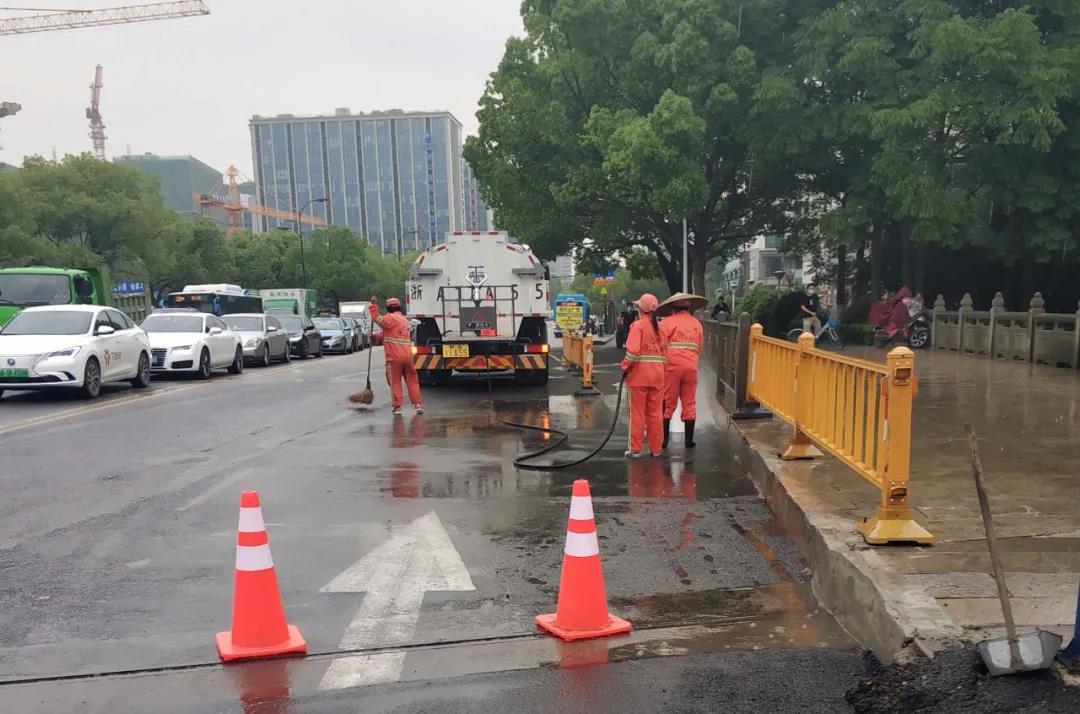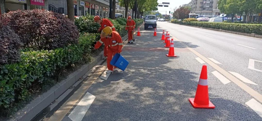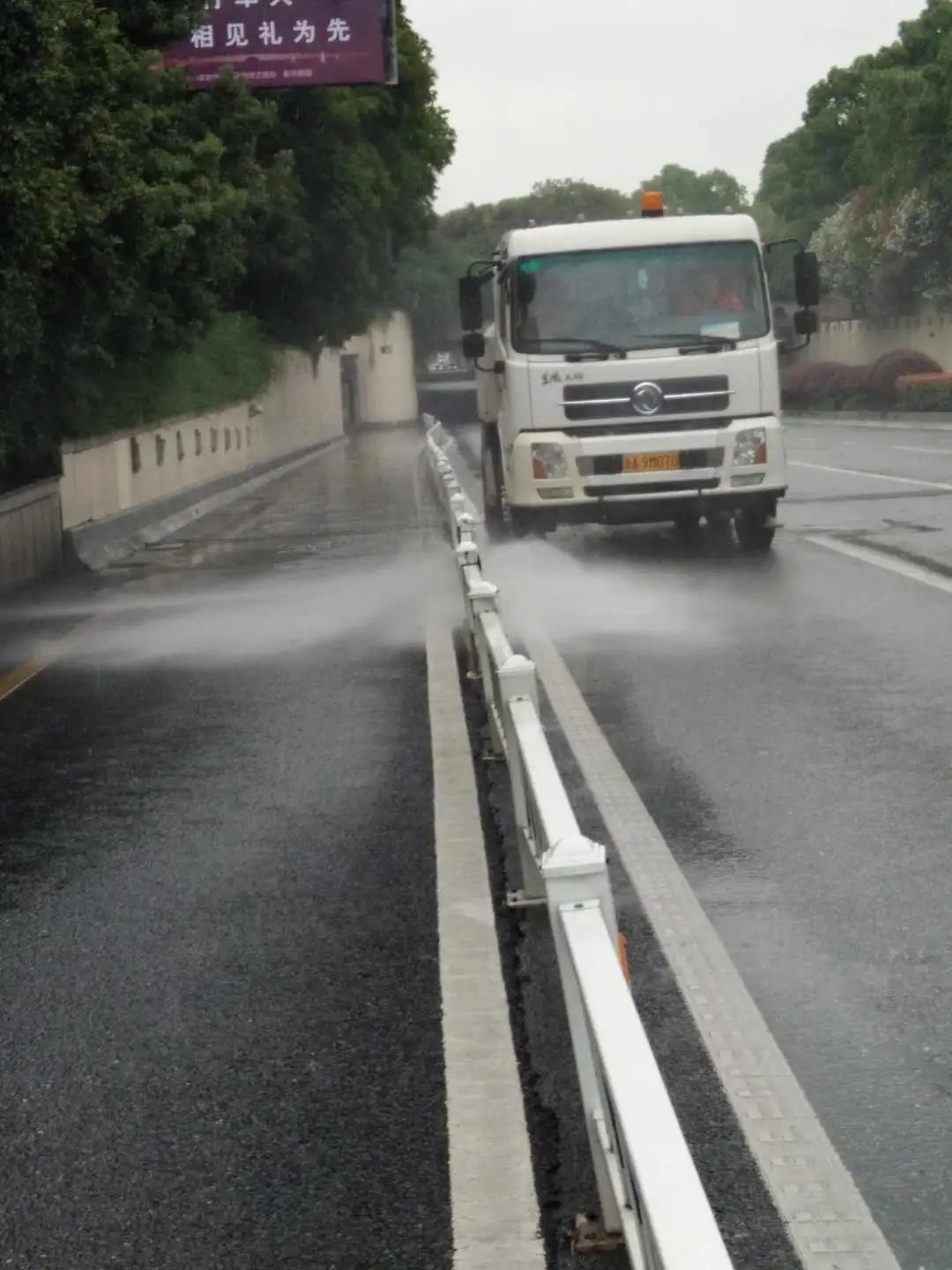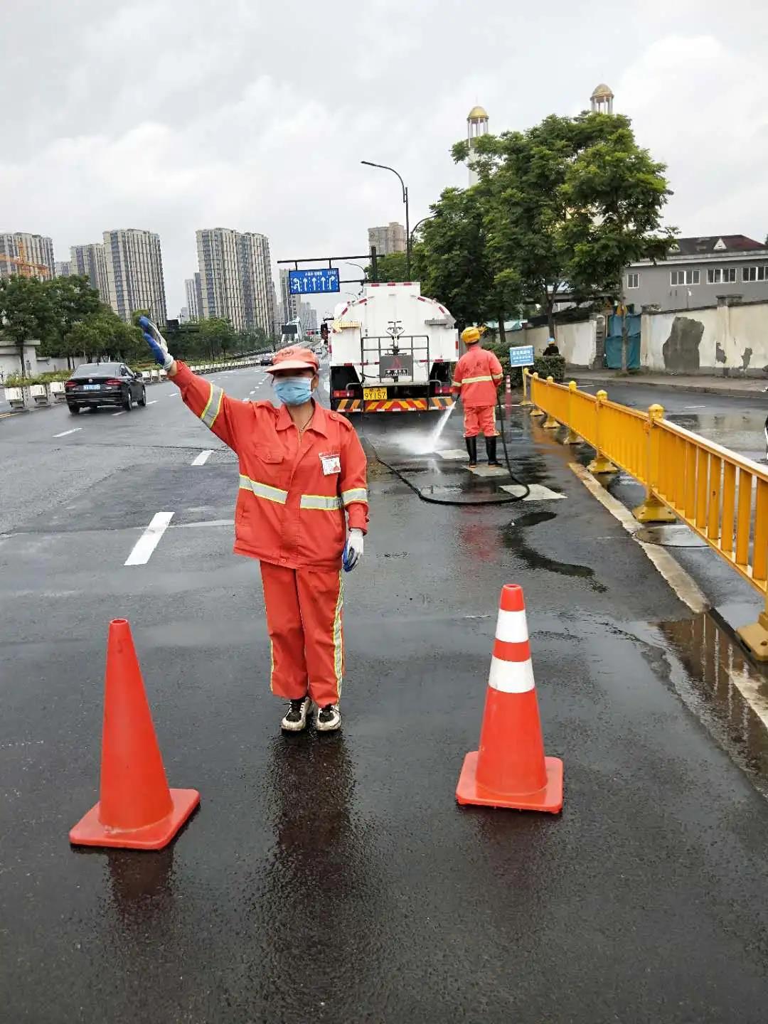 西湖分公司针对标段途经渣土车辆多,加强道路洒水与清洗作业,每日对道路进行全覆盖排查烟蒂、卫生死角、绿化垃圾、果壳箱标识、渣土乱倒、大件垃圾等影响市容市貌的问题,如有发现及时整改,在加强城市环境卫生的同时,服务部也加强一线保洁人员的自身形象和安全意识培训。