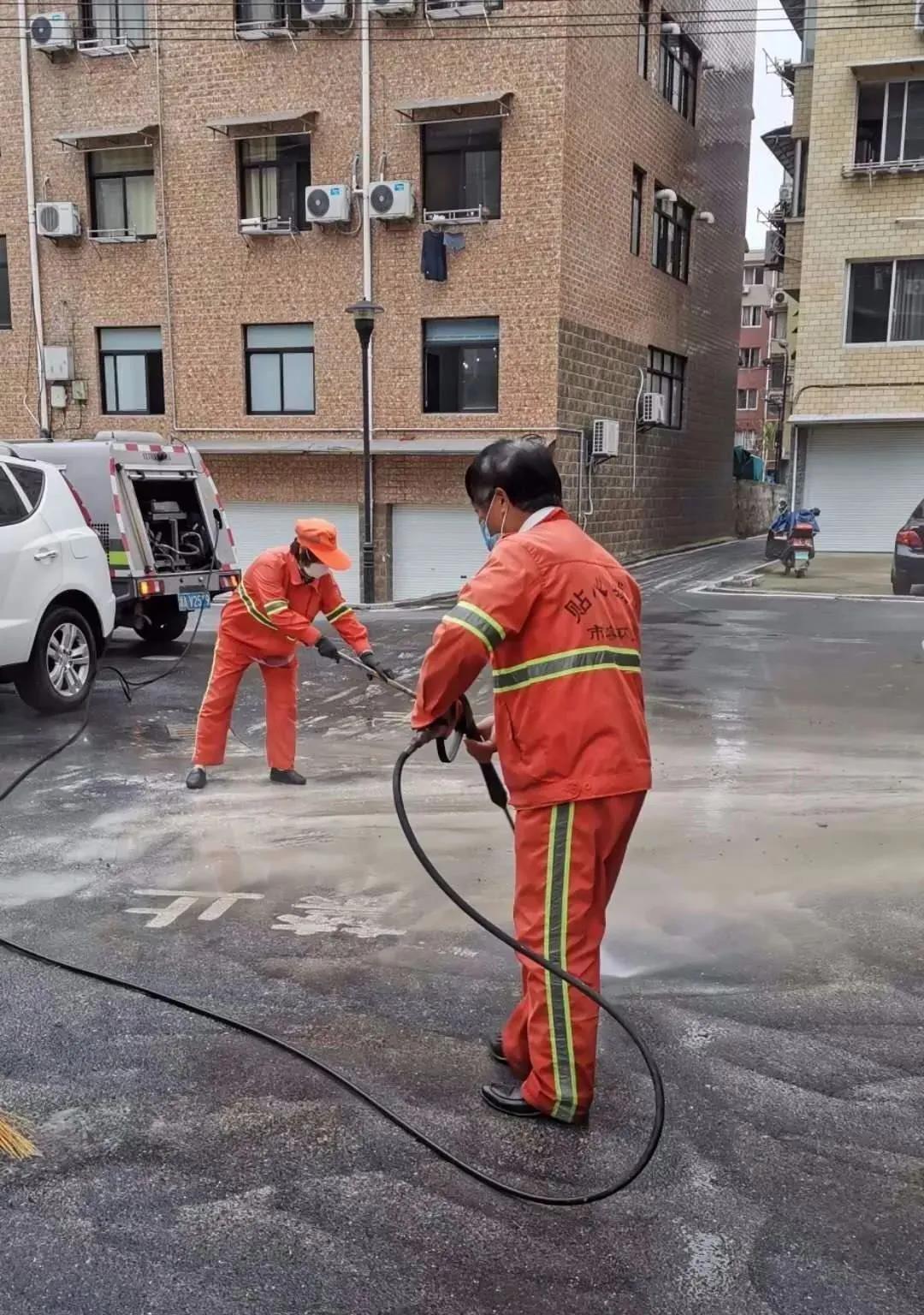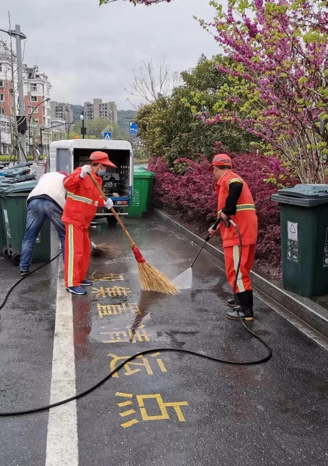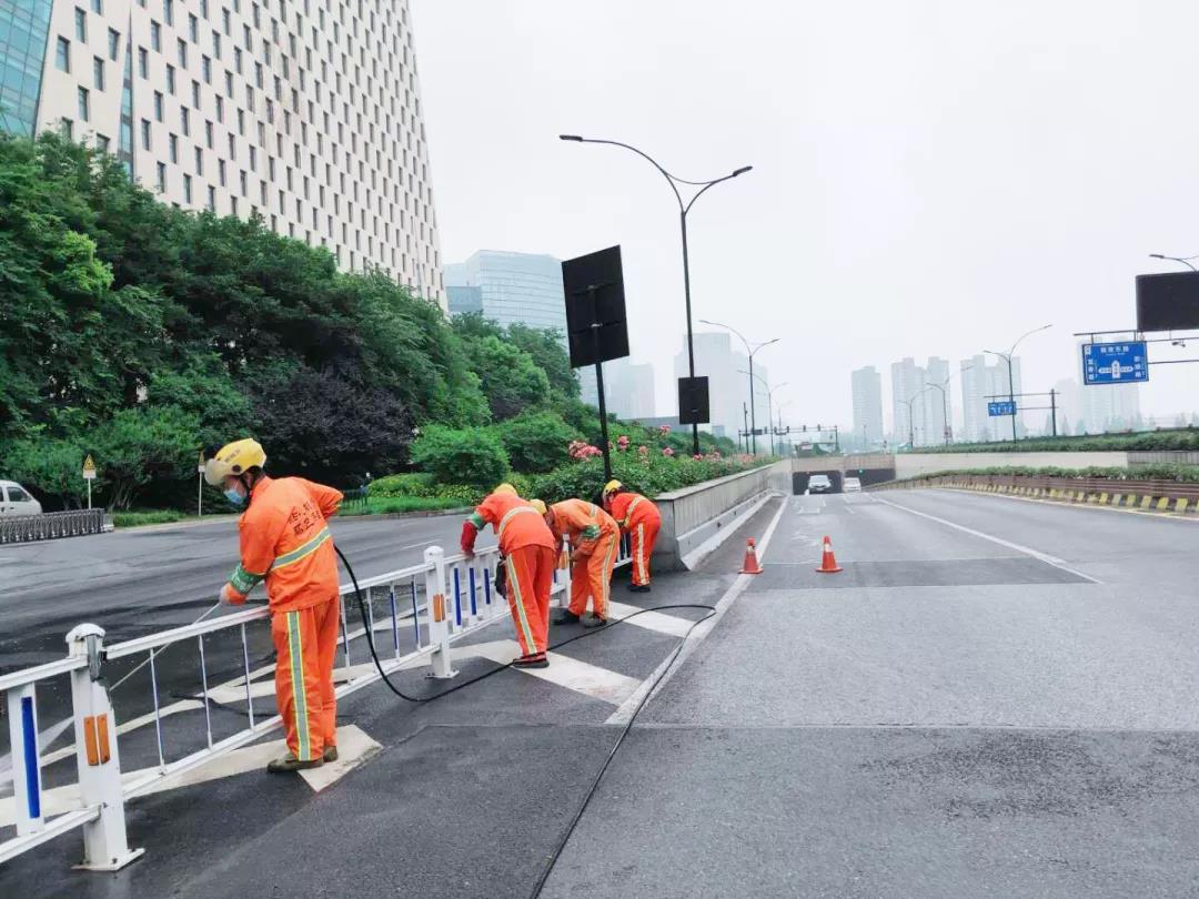 西湖分公司针对标段途经渣土车辆多,加强道路洒水与清洗作业,每日对道路进行全覆盖排查烟蒂、卫生死角、绿化垃圾、果壳箱标识、渣土乱倒、大件垃圾等影响市容市貌的问题,如有发现及时整改,在加强城市环境卫生的同时,服务部也加强一线保洁人员的自身形象和安全意识培训。