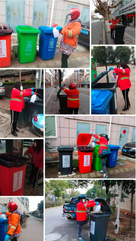巾帼西丽抗疫青年突击队环卫小分队在疫情期间全员坚持上岗、加班加点,积极投身抗疫工作。除做好每天的道路保洁外,对大街小巷路面、果壳箱、垃圾桶、窨井口、公交站台、地铁口等卫生死角进行全面消杀,阻止疫情进一步扩散,多名员工主动报名深入一线,协助社区做好酒店隔离点的消杀工作。