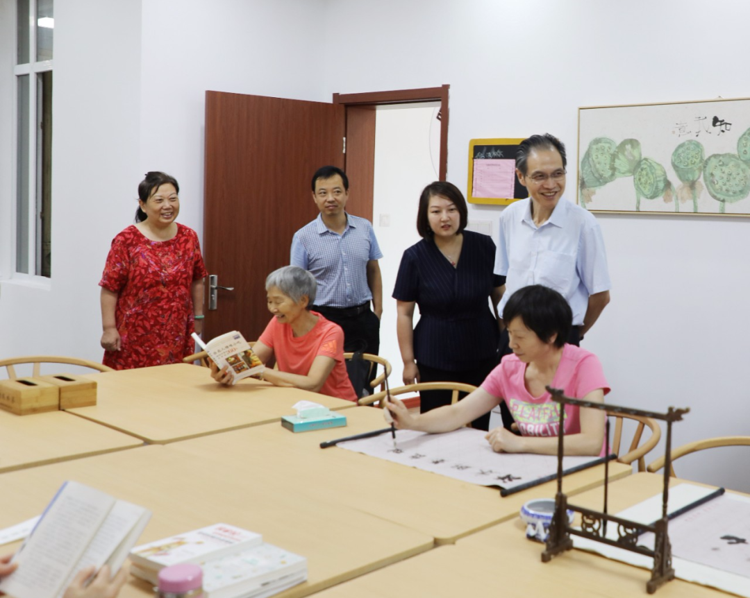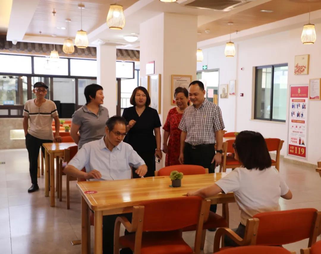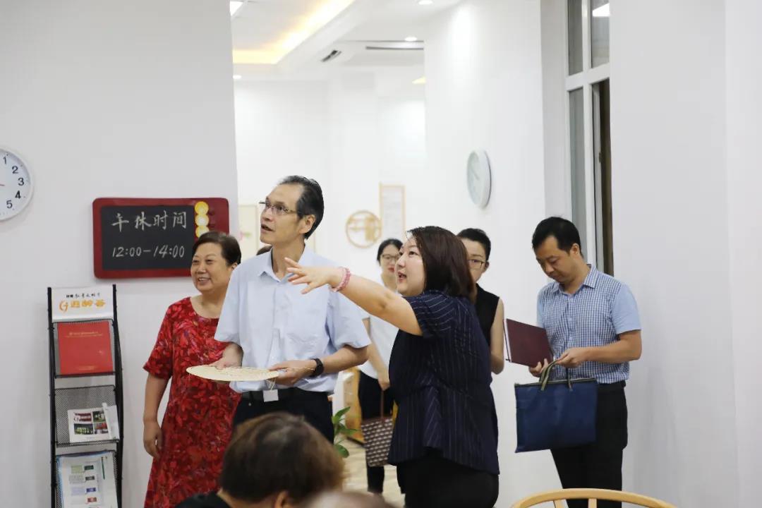 7月24日,杭州市发改委二级巡视员朱利民一行领导莅临巾帼西丽集团旗下遐龄荟居家养老服务中心参观指导,巾帼西丽集团董事长丁常菊和总经理郭昱辰全程陪同。