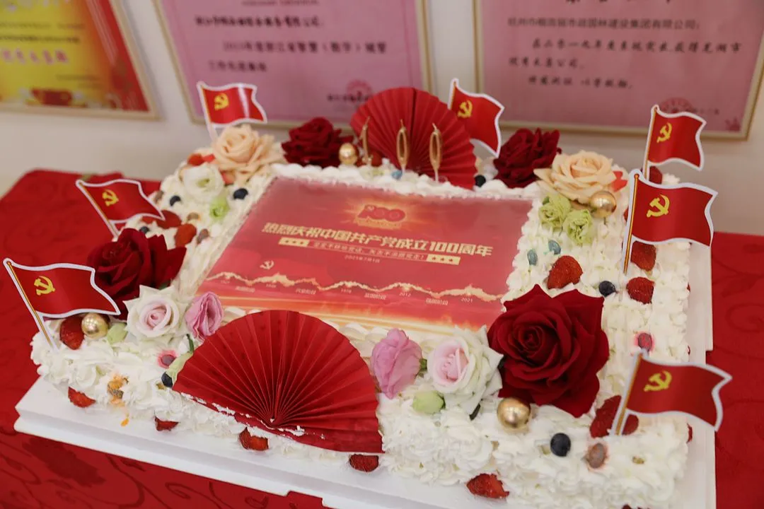 活动最后,工作人员推上精心准备的蛋糕,参会人员一起起身,挥舞着党旗,唱起生日歌一起为党庆生,分享快乐,欢祝伟大的中国共产党生日快乐!