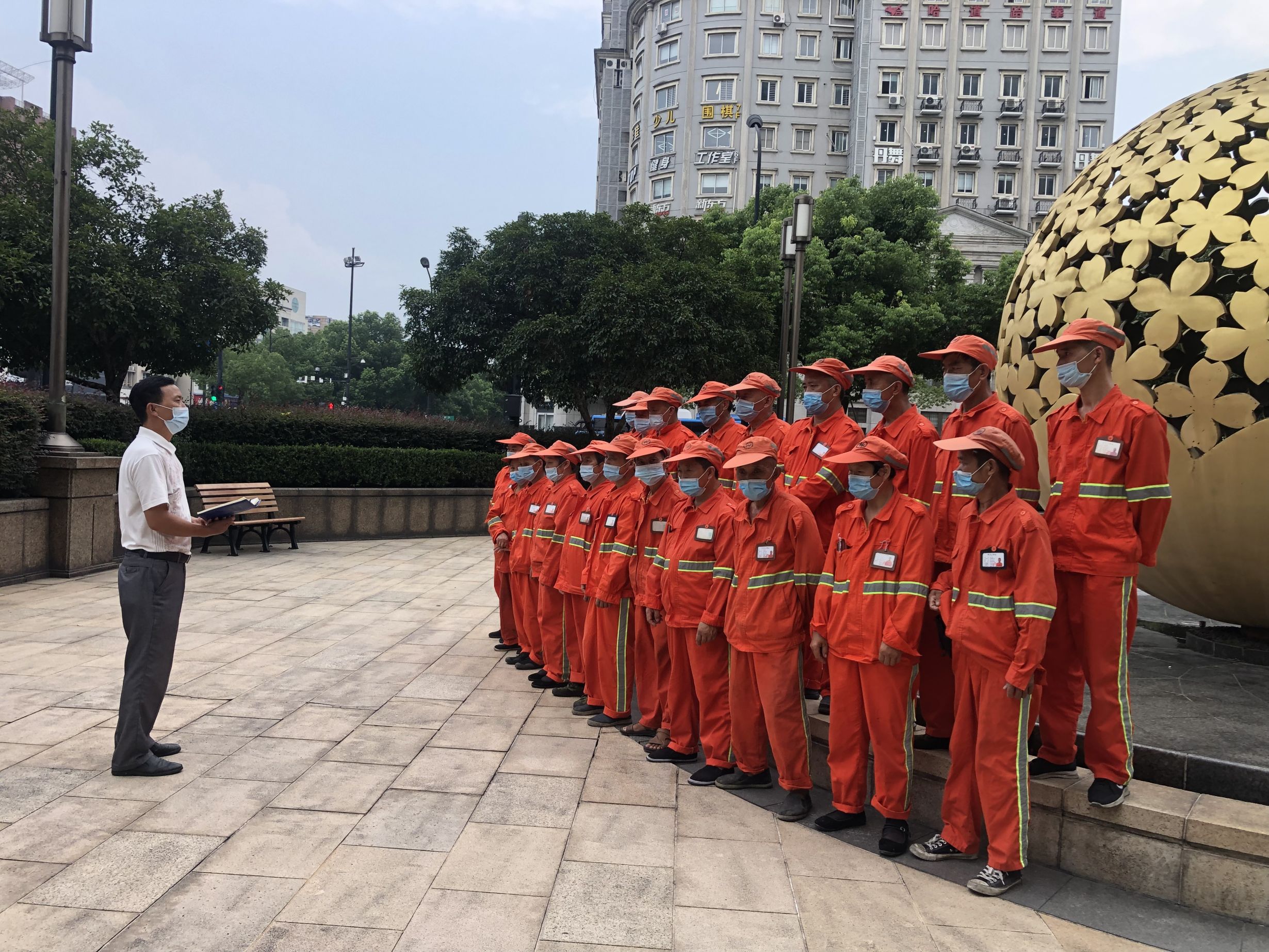 严格要求做好防疫工作,按照规范戴好口罩,接种疫苗,员工上岗前测量体温。夏季高温,要做好防暑降温工作,关注每位员工身体状况,如有身体不适,要第一时间报告班长和办公室。