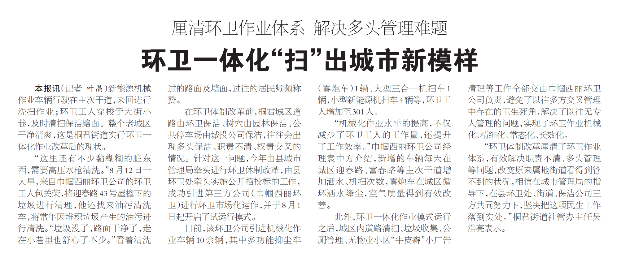环卫一体化 “扫”出城市新模样