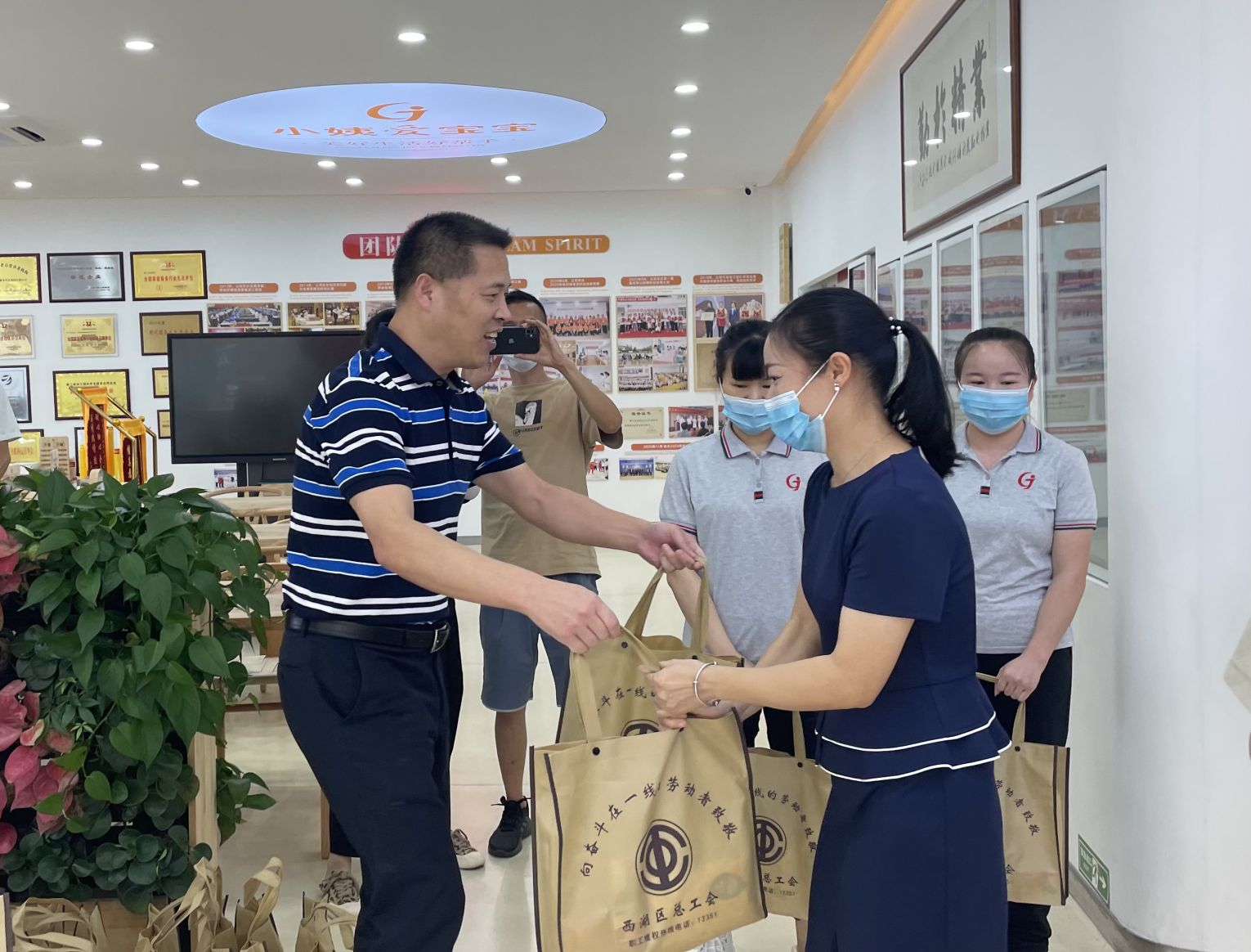 总工会详细了解企业经营管理、疫情防控等情况,关注工会工作开展情况。巾帼西丽集团强化工会职能,每年按季度划分工会主题,举办多彩活动。积极发挥工会作用,围绕中心、服务大局,努力建设“五有”基层工会。