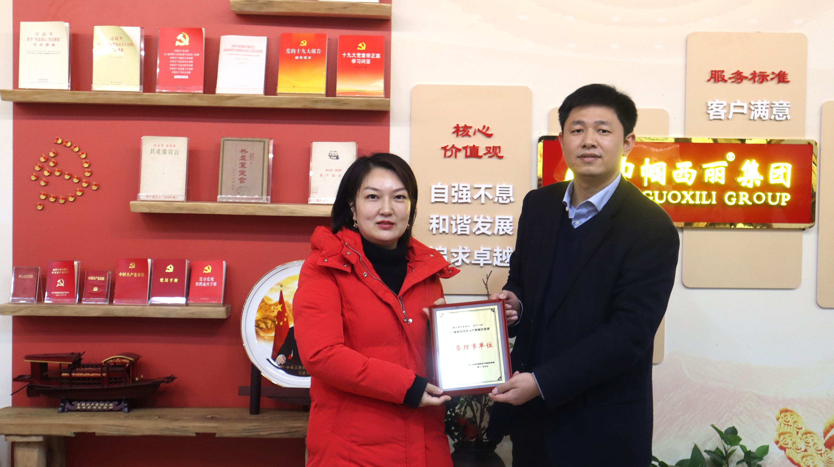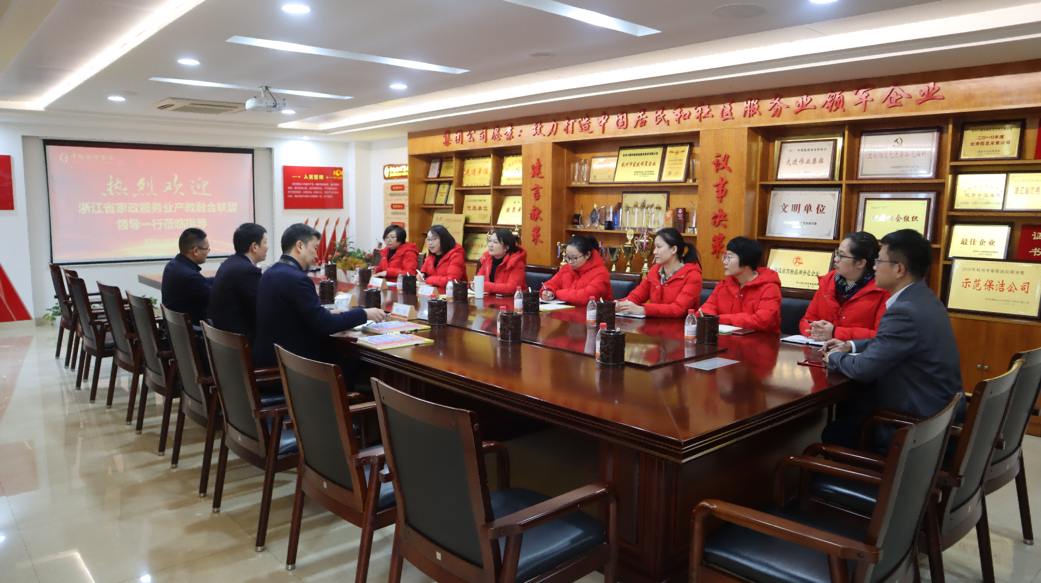 调研组一行详细了解了巾帼西丽集团发展历程及家政、市政板块运营情况,一致认为企业发展方向明确,思路清晰,予以高度肯定和赞扬,并为公司授予“浙江省家政服务业产教融合联盟成员单位”牌。
