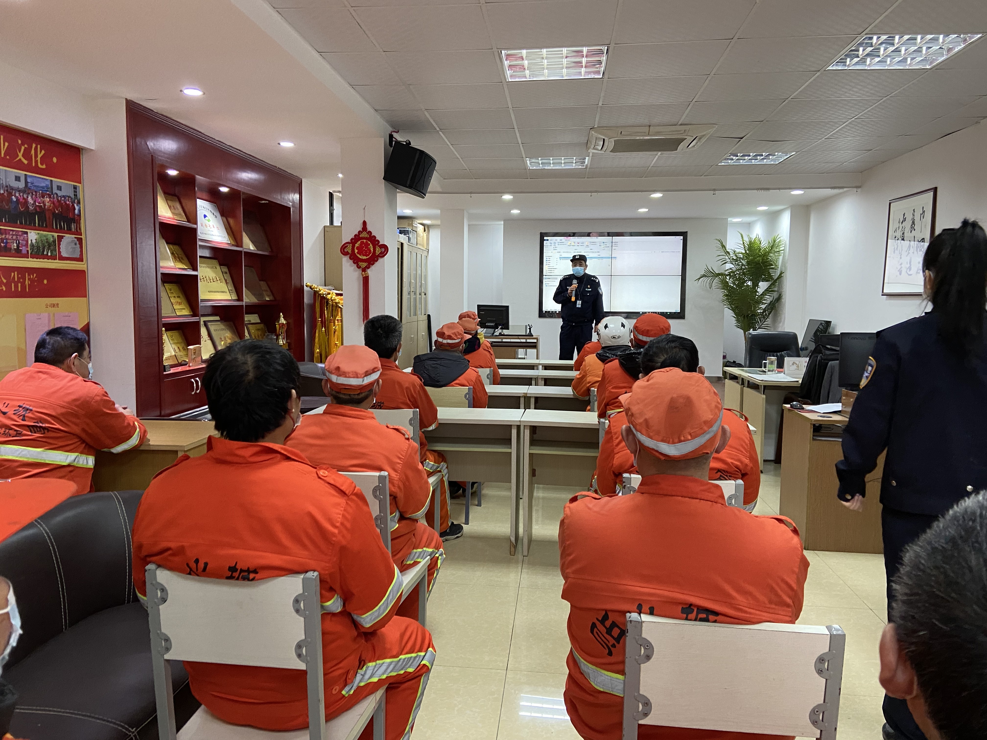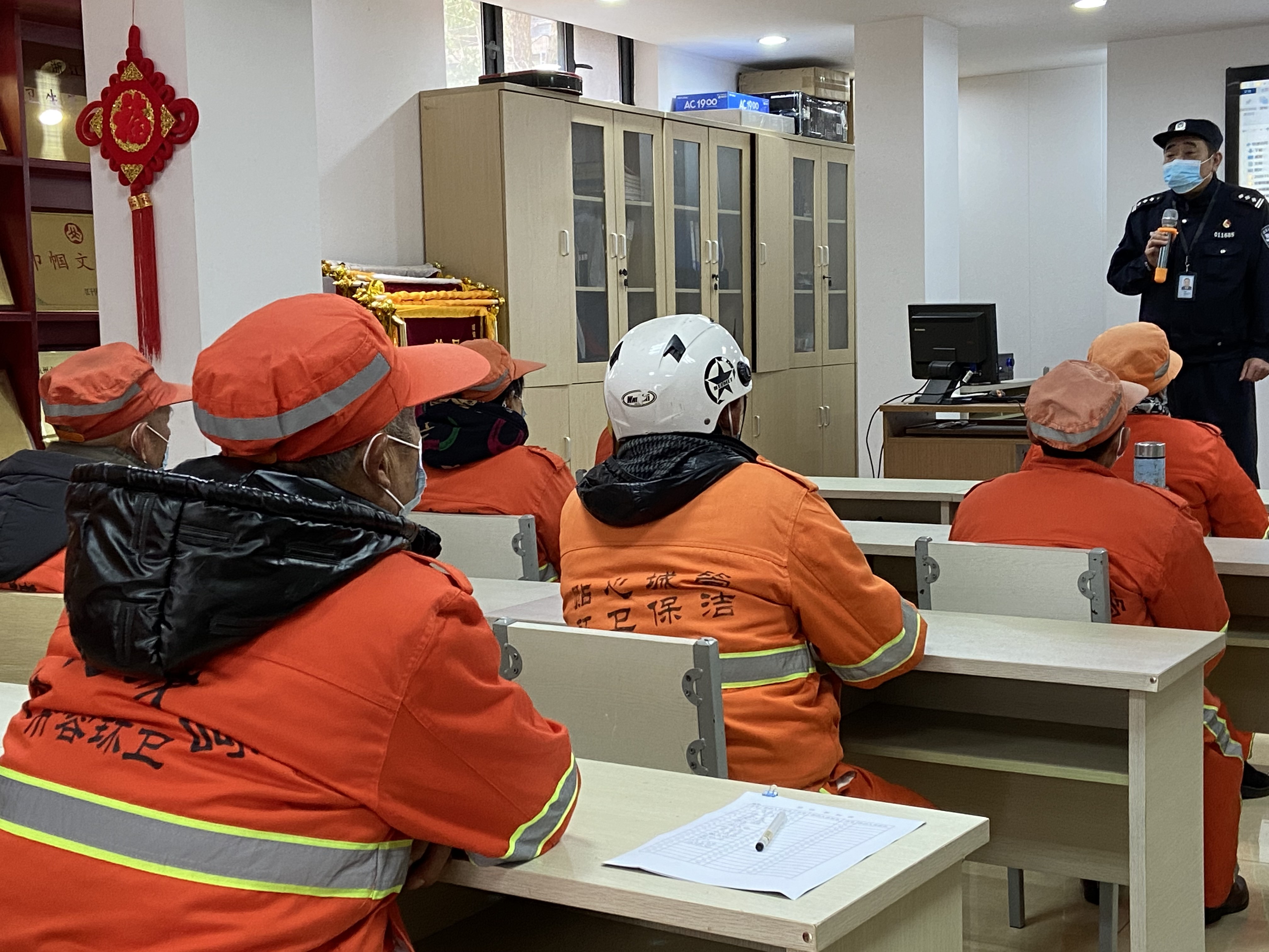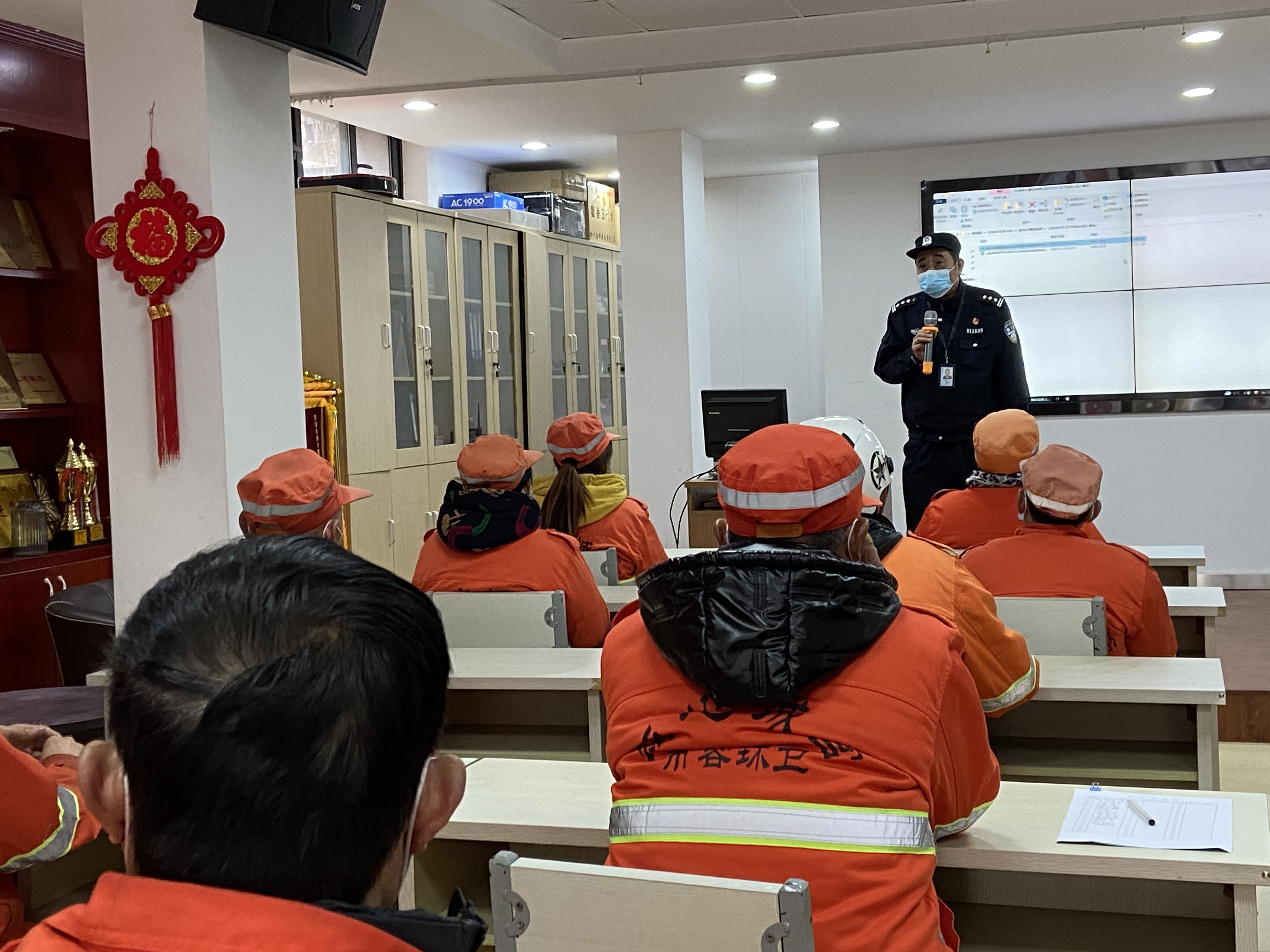 当前,道路交通状况变得日益复杂,环卫作业的危险系数也随之增加。2月14日巾帼西丽集团上城服务部,特邀彭埠交警中队民警屠警官为员工进行交通安全培训,进一步提高清运人员安全作业意识。