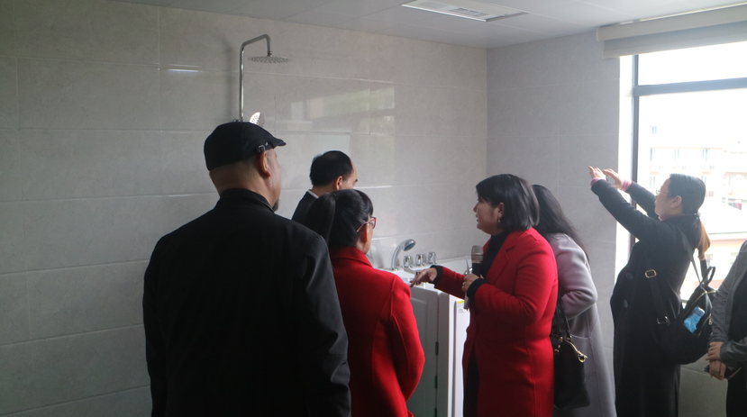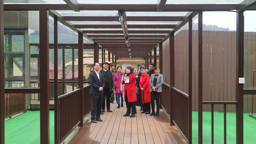 巾帼西丽总经理郭昱辰向来访领导介绍了遐龄荟留下杨家牌楼院目前整体运营情况,以及适老区域的布局及功能,详细讲解网格化服务平台为居家老人提供服务的方式。随后,一行人参观了养老服务中心的老年食堂、屋顶花园、康复理疗室、活动室等居家养老日间照料功能室和养老服务中心的老人居住环境。