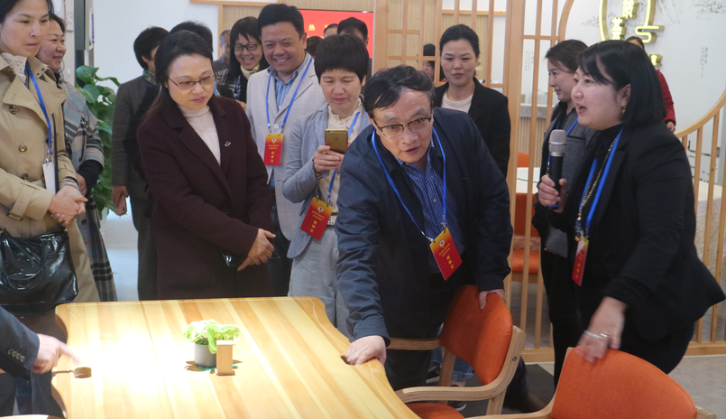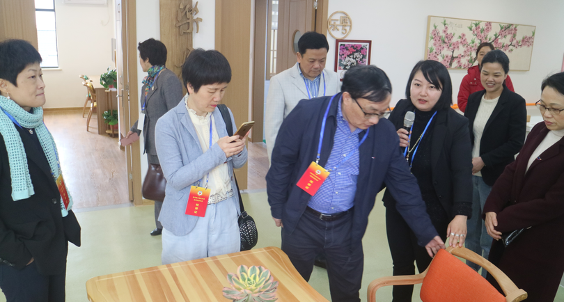 随后,郭昱辰总经理带领一行人参观了养老服务中心,参观过程中,各位政协委员对养老服中心的室内布局和环境赞不绝口,特别是中心的适老化家具和助浴器引起了委员们的浓厚兴趣,纷纷想要亲身体验一回。