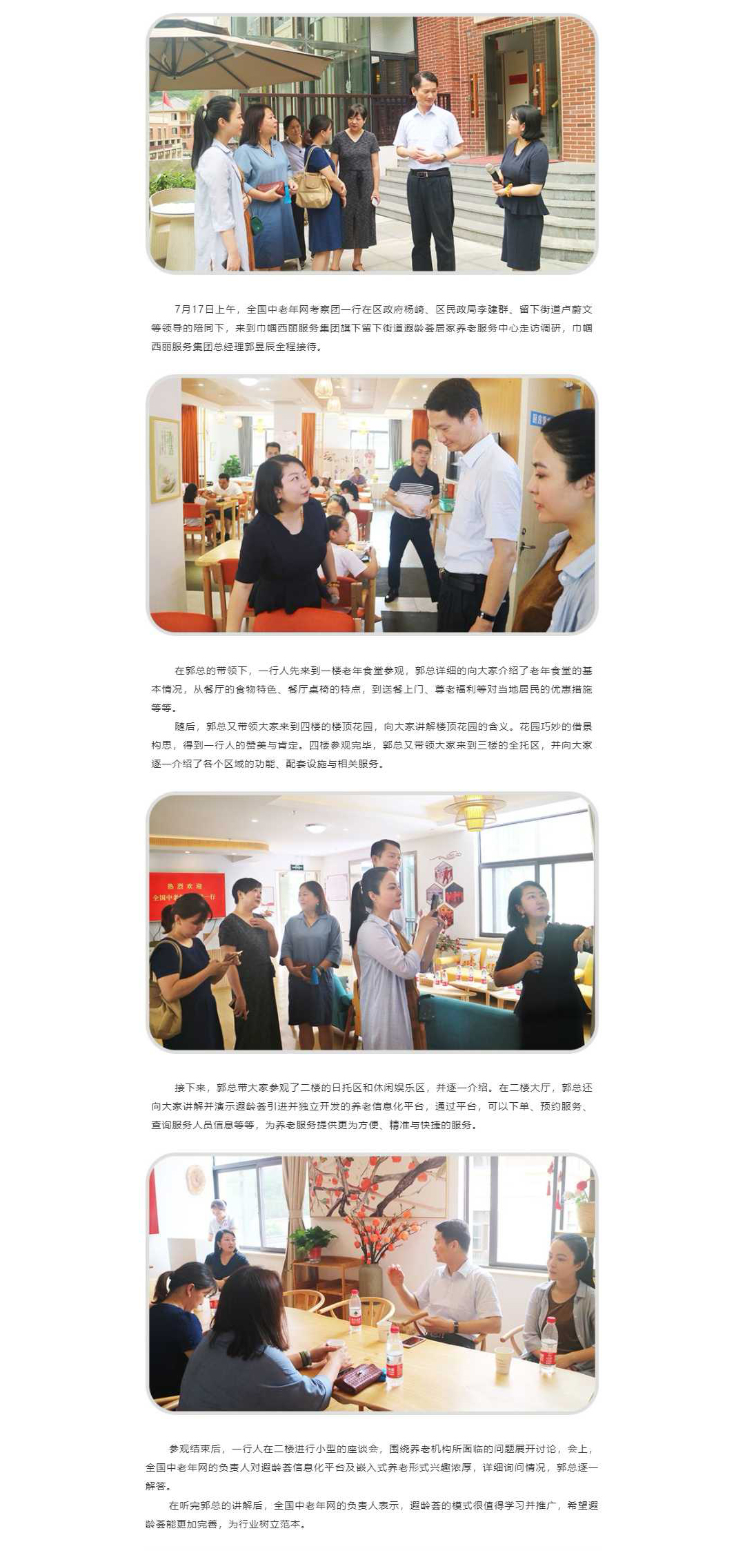 全国中老年网考察团一行莅临留下街道遐龄荟居家养老服务中心走访调研
