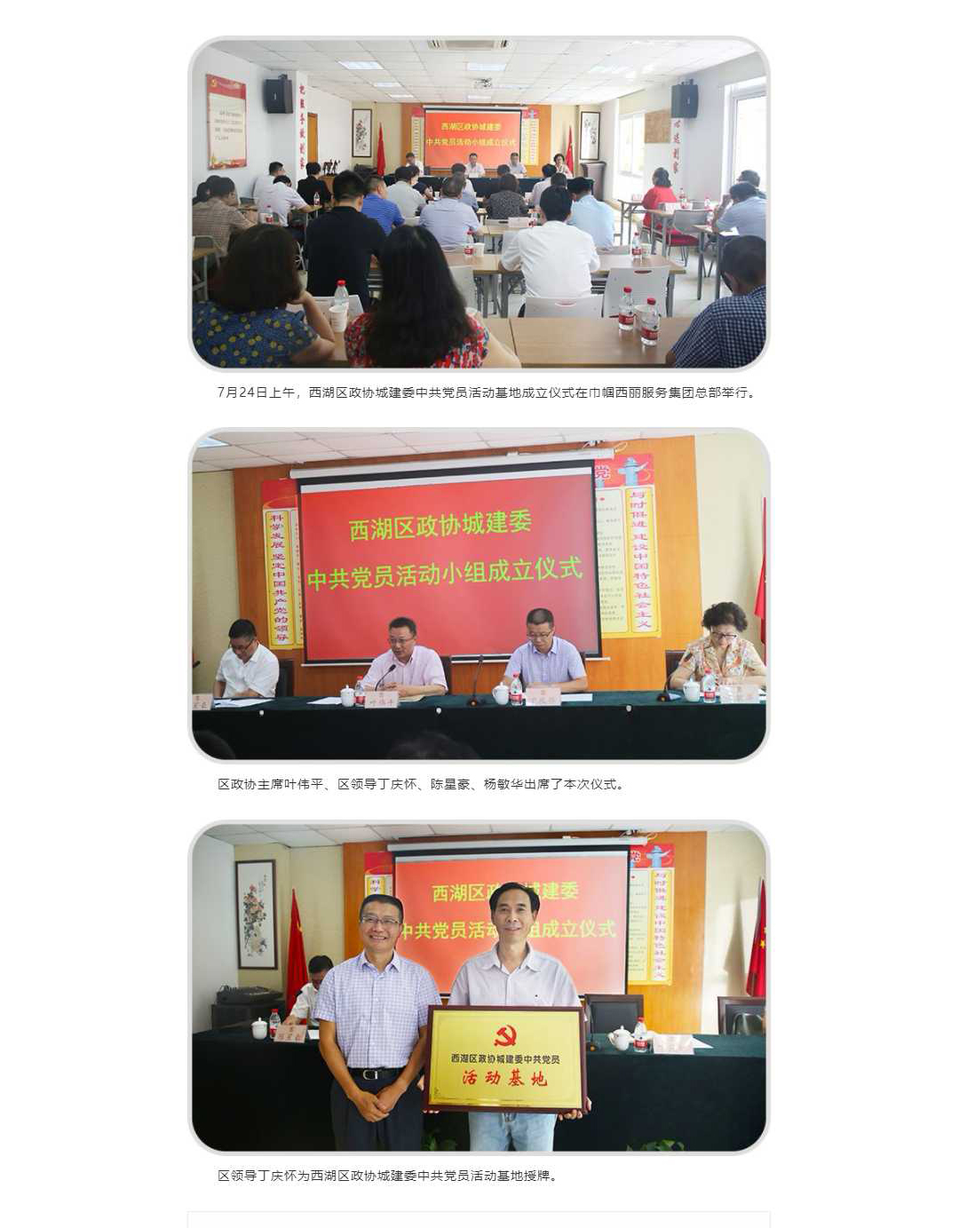 西湖区政协城建委中共党员活动基地成立仪式在巾帼西丽服务集团总部举行